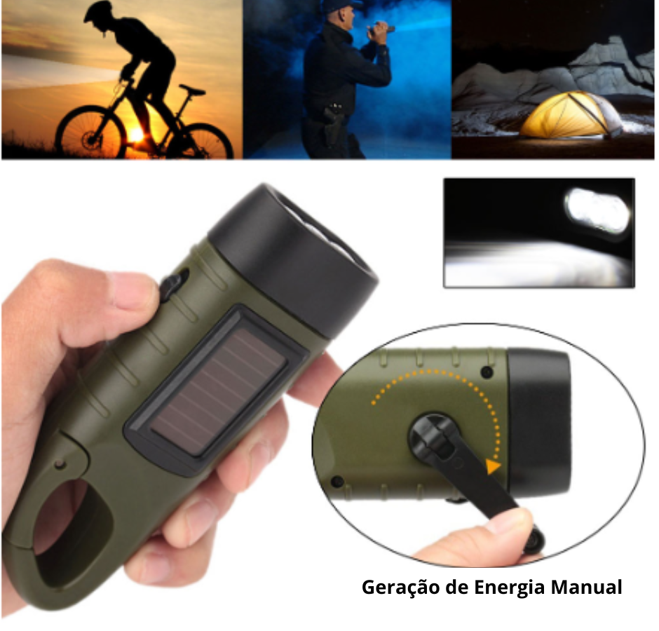 Lanterna de Emergência com Manivela e Painel Solar